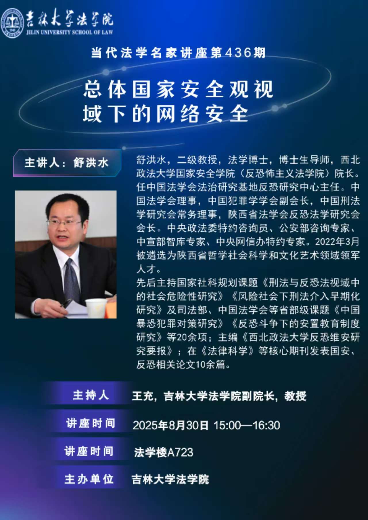 上一篇:西北政法大学舒洪水教授做客快猫 “当代法学名家讲座” 下一篇:吉大法学学术茶座第152期:联合国打击网络犯罪公约背景下功能等效原则的理论重述与中国运用