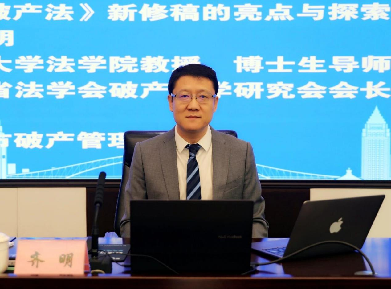 11月27日,由重庆破产法庭主办、重庆市破产管理人协会协办的第六十九期“每月一讲”学习讲座在“绿瓦楼”举行,齐明教授受邀做专题讲座。重庆破产法庭庭长刘玉妹、副庭长陈秀良,重庆市破产管理人协会副会长张涌出席,重庆破产法庭副庭长周爽主持。重庆、成都、海口三地破产法庭干警,重庆市破产管理人协会会员代表通过“线上”“线下”相结合方式共同参加讲座聆听授课。齐明教授以《谈破产法新修稿的亮点与探索》为题,分析现行企业破产法制度供给的不足之处,提出破产法修订需契合我国大政方针与文化传统、衔接现行法律体系、与司法实践有机融合,全面梳理新修稿在完善府院联动机制、引入检察监督制度、明确劣后债权规则、规范预重整程序、界定企业实质合并破产等方面的具体规则构建,结合司法实践提出立法建议。