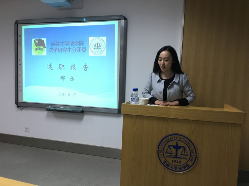 接下来进入研究生分团委换届竞选环节。现任常务副书记郝乐同学首先做述职报告。她从传承、创新、感恩三个关键词展开,对一年来研究生分团委的主要创新工作和开展的各项活动进行了总结。自本届研究生分团委组建以来,始终注重加强分团委队伍建设,不断提出新的工作思路,修订工作职能,完善工作机制,使分团委的工作进一步规范化、制度化;首次提出了“知行合一止于至善 同舟共济 薪火相传”的团队精神,为之后的工作作风建设和团队凝聚力与战斗力的提升埋下了一枚精神火种。在完成团委传统系列活动的同时,本届分团委更加注重总结和升华,先后完成了年度工作规划、快猫