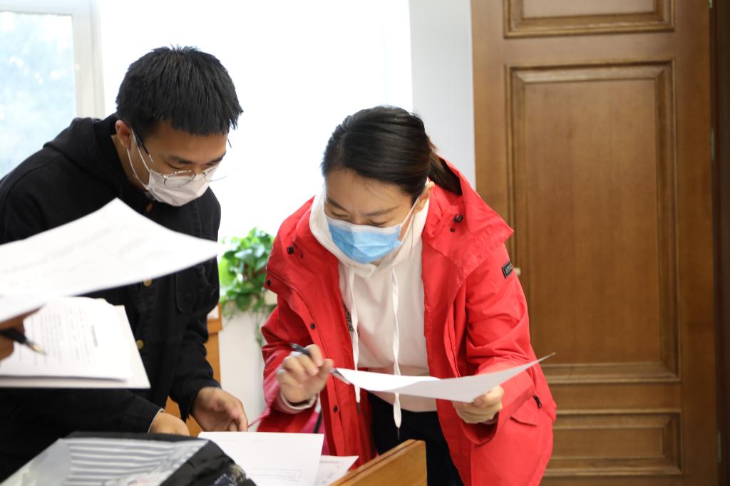 Ms. Zheng Nuo, the director of postgraduates’ office and Ms. Xu Jin, the JM students’ counselor organized the volunteers to prepare carefully and conducted rehearsals before the newcomers arrived. Xu Jie, deputy secretary of CPC Committee at School of Law came to inspect and welcome new students. She greeted the volunteers cordially and strengthened the requirements of epidemic prevention. Ms. Zheng and Ms. Xu took full participation in the process to ensure it was carried out with high efficiency.