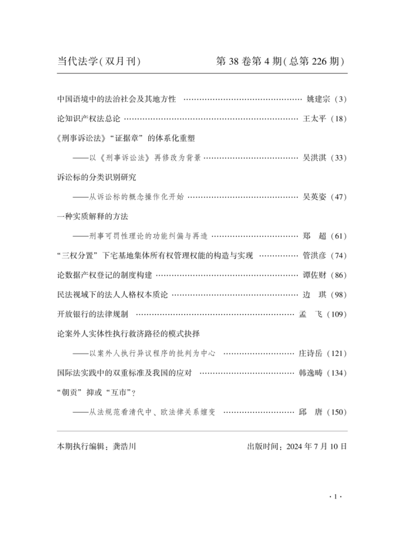 《当代法学》2024年第4期摘要